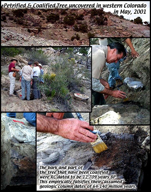 THIS 30' LONG PETRIFIED & COALIFIED TREE PRESENTS ONE MORE MAJOR PROBLEM FOR THE ARBITRARY DATING OF THE METAPHYSICAL GEOLOGIC COLUMN. IF THE AGE OF THE STRATA, THAT THIS TREE WAS FOUND IN, WAS ACTUALLY 64-140 MILLION YEARS OLD, THERE WOULD BE NO RADIOACTIVE CARBON LEFT IN THIS TREE TO MEASURE!