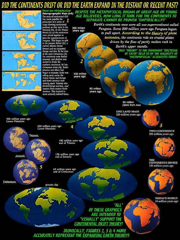 Contrary to the conventional (biased) scientific community, there are "two metaphysical theories" as to how the continents, which were obviously once connected, ended up in the positions they are today. These are...