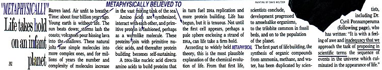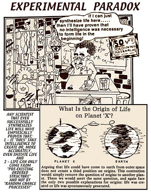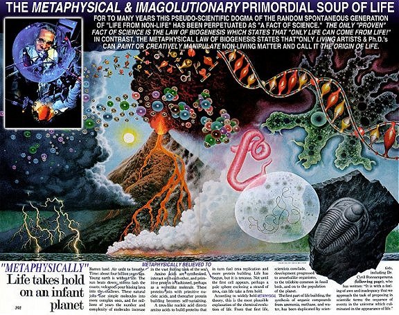 | "OXYMORONIC" THIS KIND OF "SCIENTIFIC EXPERIMENTATION" REALY IS. ANY TIME A "SCIENTIST" USES THEIR "INTELLECT" TO "CREATE AN EXPERIMENT" TO PROVE THAT "NO INTELLEGENCE" WAS NEEDED TO "PRODUCE THE RESULTS" ATTAINED BY THAT "EXPERIMENT" IS AN "OXYMORONIC EXPERIMENT!" BELOW IS THE NATIONAL GEOGRAPHIC SOCIETY'S "METAPHYSICAL INTERPRITATION" OF THE "MACRO-EVOLUTIONARY DOGMA OF THE RANDOM-CHANCE CREATION OF LIFE."