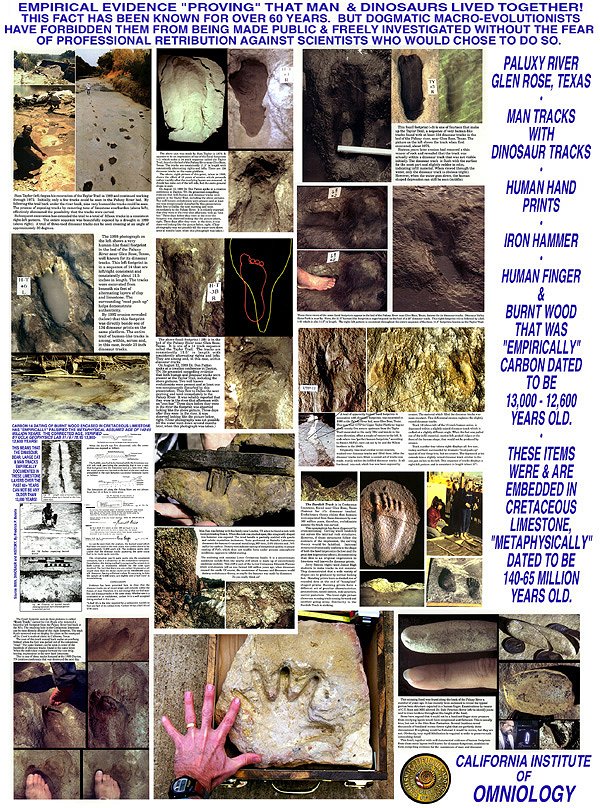 THAT MAN & DINOSAURS LIVED TOGETHER, GLEN ROSE TEXAS. ![]() THESE ARE 1-11 OF 24 THUMBNAIL IMAGES OF 8.5x11 COLOR PICTURE-INFORMATION SHEETS THAT ARE AVAILABLE FOR PURCHASE. THE HAND PRINT AND BURNT BRANCH THUMBNAILS ARE NOT PART OF THE SET AT THIS TIME. GO TO PAGE 2of3 |