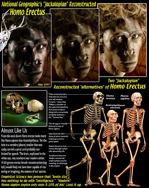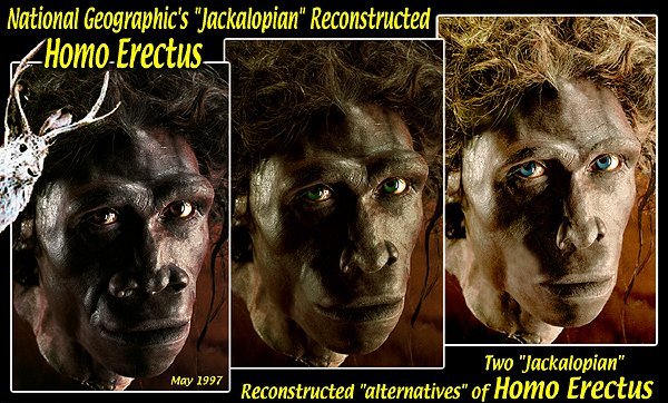 The National Geographic's "Jackalopian" reconstructive art department "crafted" the imagolutionary "Homo Erectus" female head, upper left.