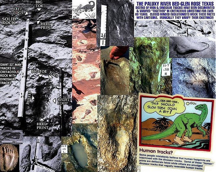THAT MAN (SOME VERY BIG) AND DINOSAURS LIVED TOGETHER! ![]() THESE MAN TRACKS, TOGETHER WITH DINOSAUR TRACKS, CREATES A SERIOUS PROBLEM FOR DEVOTEES OF THE METAPHYSICAL MACRO-EVOLUTIONARY FAITH. ACCORDING TO MACRO-EVOLUTIONARY FUNDAMENTALISTS, (THOSE WHO ARBITRARILY DATE THE CRETACEOUS LIME STONE BETWEEN 140-65 MILLION YEARS) "BELIEVE" DINOSAURS WERE SUPPOSED TO HAVE BEEN EXTINCT AT LEAST 65 MILLION YEARS BEFORE MAN EVOLVED. THEIR "PROFESSIONAL EXPLANATION" OF THESE TRACKS IS THAT DINOSAURS OCCASIONALLY WORE "HUMAN RUBBER BOOTIES!" THESE TRACKS ARE NOT A PROBLEM FOR CREATION FUNDAMENTALISTS, (THOSE WHO HOLD TO THE HISTORICAL ACCURACY OF THE BIBLES ACCOUNT OF "GIANTS" AND A GLOBAL FLOOD AROUND 4,300 YEARS AGO) BECAUSE BOTH ARE PREDICTED. " TABLE 1, BELOW, SUMMARIZES THE HUMAN CHARACTERISTICS OF THE FOSSIL FOOTPRINTS WITH THOSE STANDARDS OBTAINED FROM TWO SEPARATE SOURCES IN ANTHROPOLOGICAL STUDIES. AS CAN BE SEEN BY THESE STUDIES THERE IS NO DIFFERENCE. A TOTAL OF ABOUT 50 HUMAN-LIKE ICHNITES HAVE BEEN REPORTED BY THE CREATION EVIDENCE MUSEUM AT THE McFALL SITE. OUR TEAM STUDIED ONLY THE EIGHT THAT WE HELPED EXPOSE IN THIS CRETACEOUS STRATA. ![]() THE CONCLUSION IS INESCAPABLE. NUMEROUS EXCAVATIONS (WITH MANY WITNESSES) OF PRISTINE HUMAN-LIKE ICHNITES HAVE DISCOVERED HOMO SAPIENS MAKING TRACKS WITH DINOSAURS. A NEW SPECIES HAS NOT BEEN DISCOVERED. HUMAN-LIKE TOE TIPS IMPRESSED INTO THE ROCK WERE DISCOVERED AT THE END OF MANY OF THESE HUMAN-LIKE ICHNITE IMPRESSIONS. DINOSAUR DID NOT GROW HUMAN-LIKE TOES ON THEIR TOES. " THEY DIDN'T WEAR HUMAN RUBBER BOOTIES EITHER. " BAREFOOT HUMANS CAN PLACE THEIR FOOT INTO A FOSSIL HUMAN ICHNITE OF EQUAL DIMENSIONS AND KNOW INSTINCTIVELY THAT A HUMAN FOOT MADE SAID ICHNITE. " THIS TABLE WITH BACKGROUND INFO CAN BE FOUND IN THE SCIENTIFIC PAPER BELOW. "DIRECT DATING OF CRETACEOUS-JURASSIC FOSSILS" (AND OTHER EVIDENCES FOR HUMAN-DINOSAUR COEXISTENCE) A Creation Research Science-Education Foundation project, CRSEF, Box 292, Columbus OH 43216 Robert Garbe, Hugh Miller, John Whitmore, George Detwiler, Doug Wilber, Frank Vosler, John Ditmars, D. Davis Return to Contents |